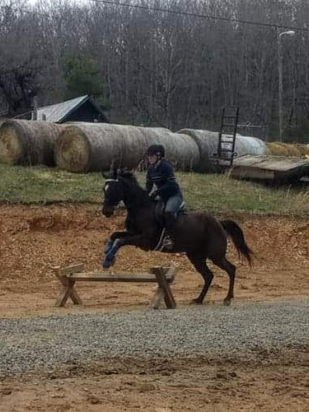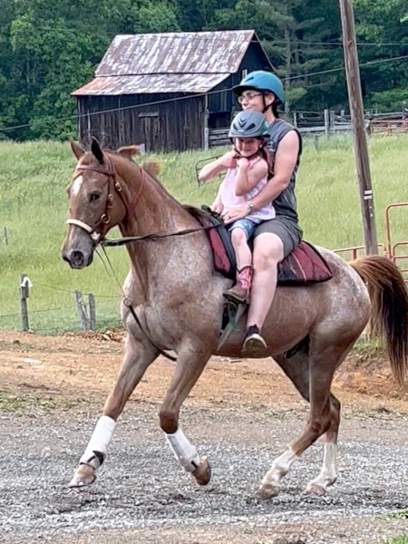 Meet Hope! Hope is Tique’s second child. She is 100% ADHD and 100% love. Hope is a 2015 model, and has dazzled (and frustrated!) the farm with her brilliant intelligence. She is athletic, and despite a leg injury (which healed beautifully – to God be the Glory!), her favorite things to do are gallop cross country, and go across jumps. She and Miss Kris have logged many hours on the trails and backcountry all over SWVA. Hope teaches munchkins how to ride, and then challenges the adults as they advance. Hope is a Walkaloosa (appaloosa X TWH), and as such willingly exhibits 4 gaits: Walk, Running-Walk, Trot, and Canter.