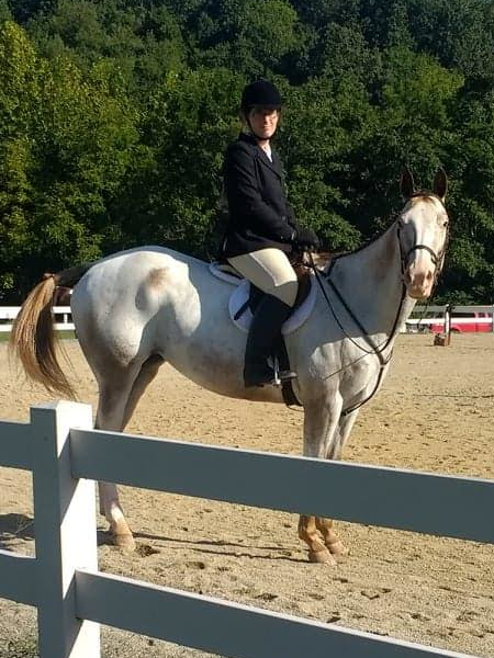 Meet Mystique, AKA “Tique”. Tique is a 2005 model lovebug. She’s been with Miss Kris for all but her fist year of life. Together they have spent a year working on a cattle ranch in Wyoming, excelled in the hunter show ring, dabbled in the western show ring, played with sidesaddle in the show ring, and now Tique spends her time toting beginners and kiddos around for lessons. She has arthritis in a knee now, but still wants to work (and actively pouts if she doesn’t!). She has had four babies (one deceased), two of which are permanent fixtures on the farm.