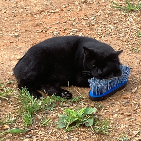 Meet Samba! Samba is a 2024 rescue; pulled from behind a vehicle’s engine block by Mr Andrew. Samba is still in the “kitten terror” stage and gets in trouble constantly.
